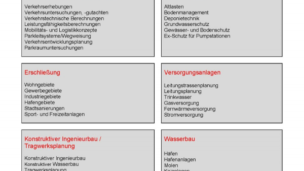 Wir bieten ein umfassendes Spektrum an Planungs- und Beratungsleistungen aus dem Fachbereich Bauingenieurwesen. In unserem Leistungsspektrum haben wir eine Übersicht unserer Fachbereiche erstellt.