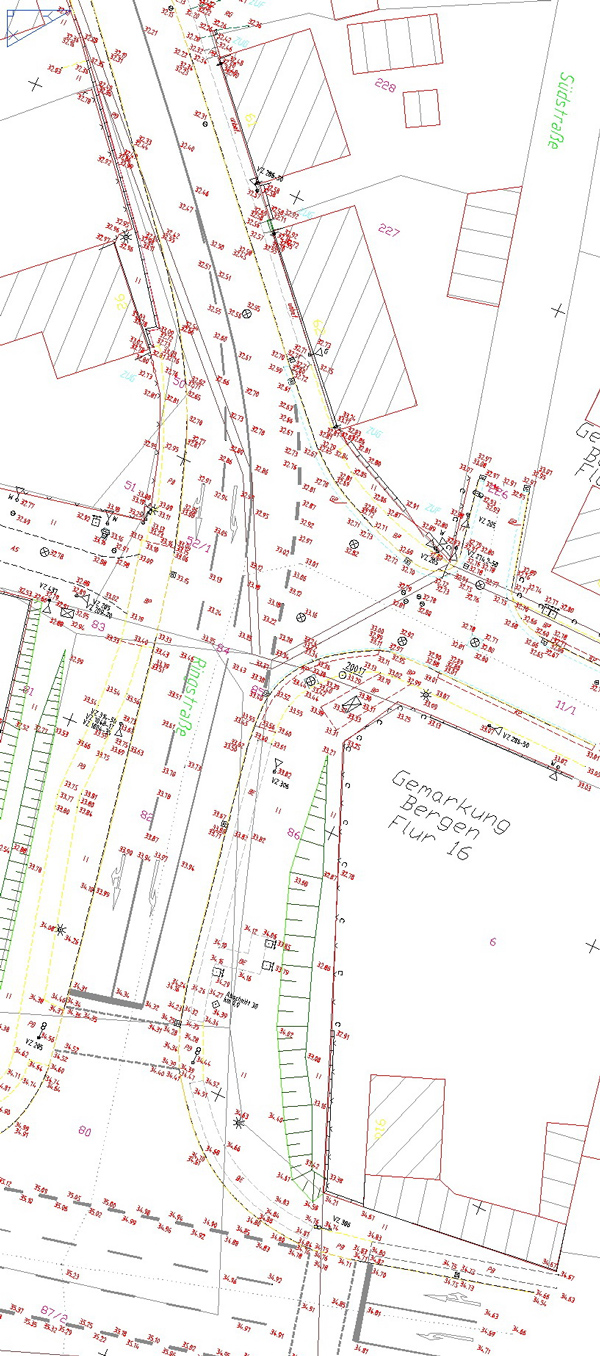EntwurfsvermessungAufmaß der Ringstraße und Gingster Chaussee, ca. 2,6 km innerorts,Erstellung eines digitalen Geländemodelles